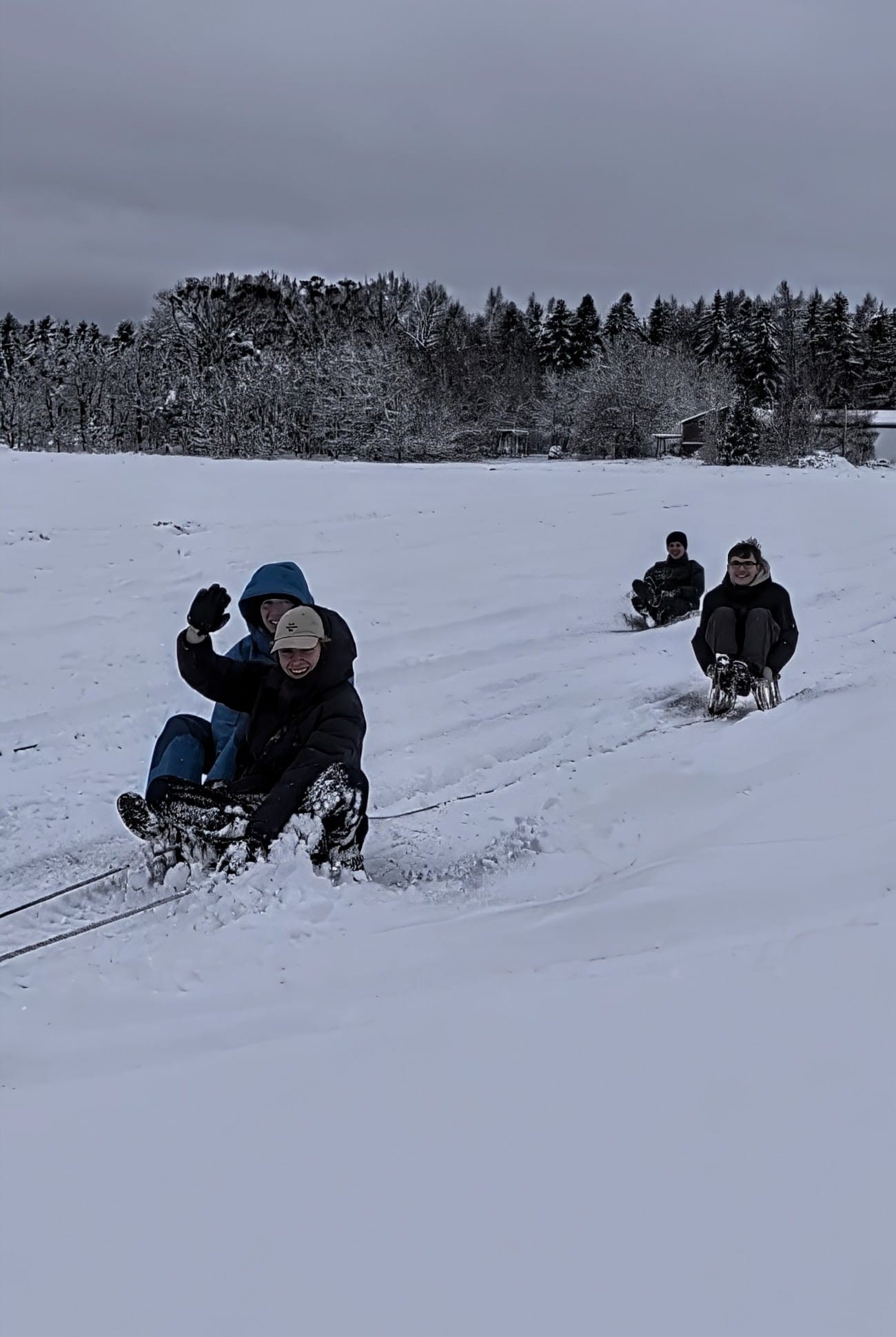 Nach drei Tagen mit viel Schneefall war es soweit, wir konnten endlich nach jahrelager Pause wieder mal mit der Winde schlittenfahren.
